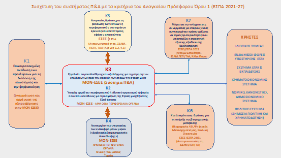 Από τα παραπάνω κριτήρια τα κριτήρια Κ2,Κ3 και Κ4 είναι αυτά που συνδέονται πιο άμεσα με τη διακυβέρνηση της ΕΣΕΕ 2021-2027 ενώ τα υπόλοιπα τέσσερα κριτήρια συσχετίζονται περισσότερο με την αποτελεσματική εφαρμογή των πεδίων παρέμβασης της ΕΣΕΕ για την επίτευξη των Στρατηγικών Στόχων. H ΕΣΕΕ 2021-27 υποστηρίζεται από δράσεις και μέτρα που αναφέρονται στα κριτήρια Κ5, Κ6 και Κ7. Το σύστημα παρακολούθησης και αξιολόγησης (Κ3) υποβοηθεί την εκπλήρωση και των υπολοίπων κριτηρίων με σκοπό το συνολικό σύστημα διακυβέρνησης της ΕΣΕΕ 2021-27 να πληροί συνεχώς τον Αναγκαίο Πρόσφορο Όρο υπό την εποπτεία της ΜΟΝ-ΕΣΕΕ. Τα στοιχεία εκπλήρωσης των επτά κριτηρίων παρουσιάζονται στην αυτό-αξιολόγηση της χώρας σε σχέση με τον Πρόσφορο Όρο 1.